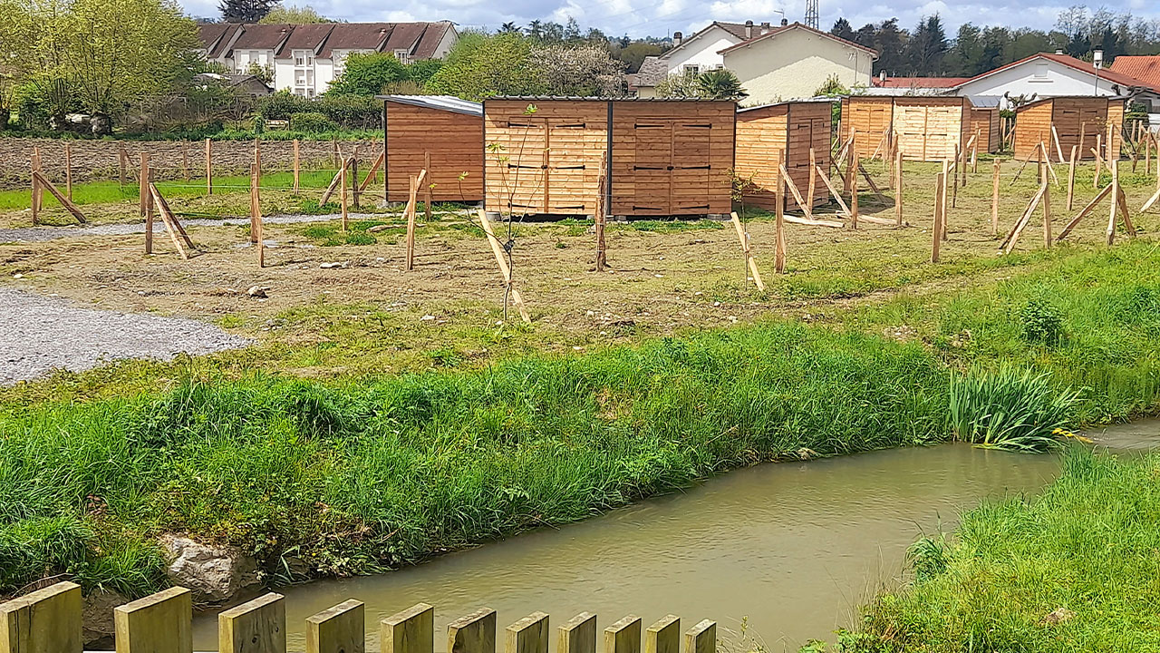 Les parcelles sont situées dans la rue des Champs sur un terrain privé acquis par la Commune et dont l’usage exclusif est le développement de potagers entretenus par les utilisateurs locataires.