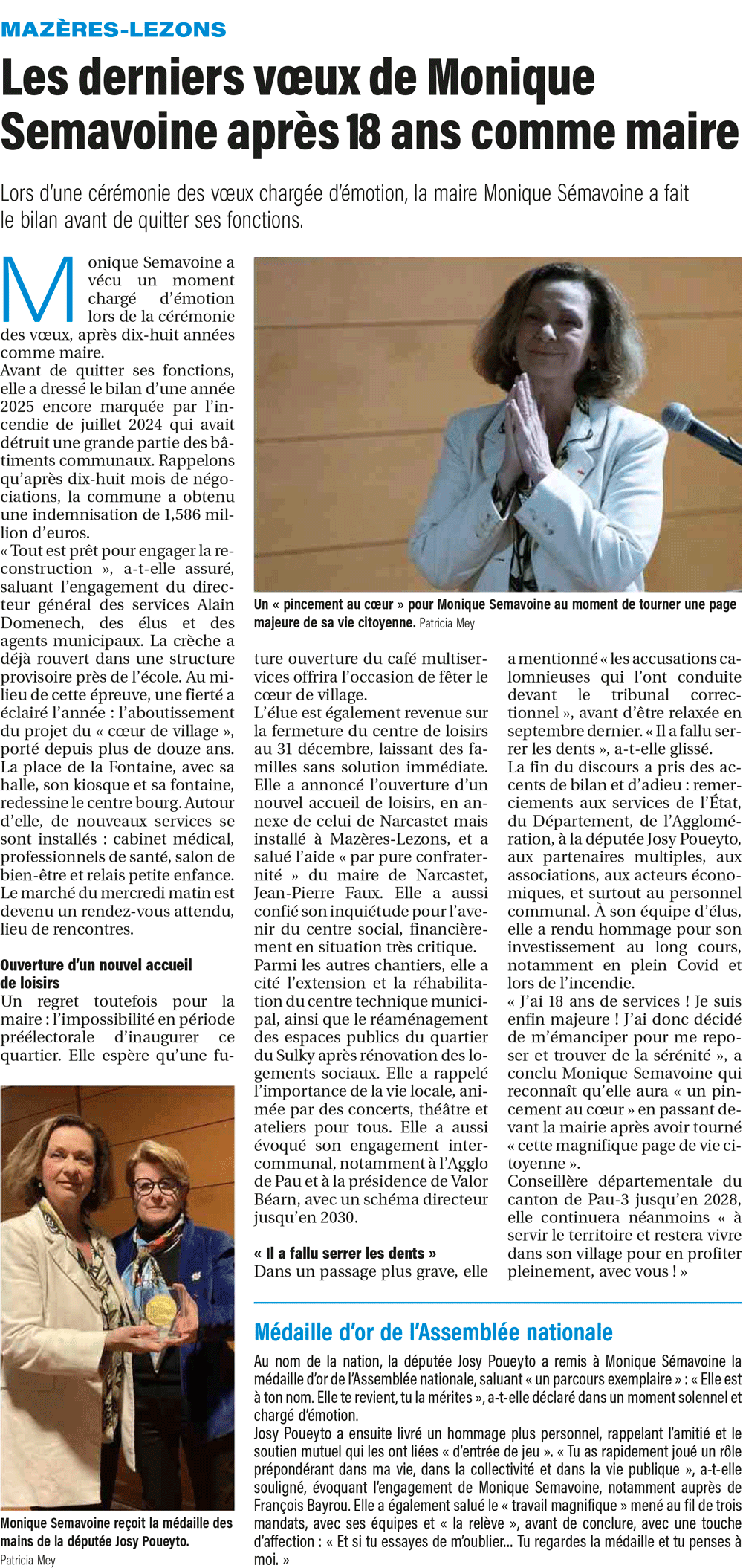 Lors d’une cérémonie des voeux chargée d’émotion, la maire Monique Sémavoine a fait le bilan avant de quitter ses fonctions.